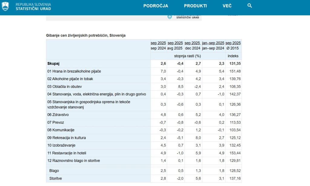 Inflacija je sezonsko deloma upadla, napovedi za jesen in pa zimo niso dobre. (Vir: SURS)