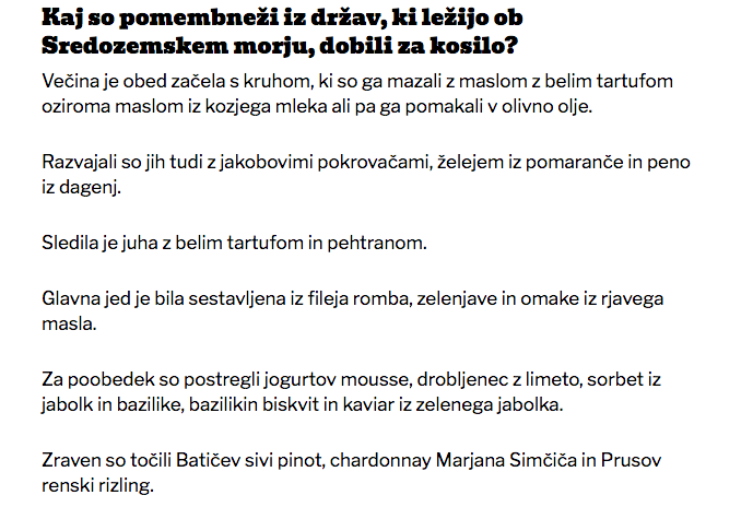 Dnevnik je bralcem postregel z menijem, ki so ga postregli “sredozemskim državnikom” v hotelu Kempinski. Izjemen novinarski dosežek!
