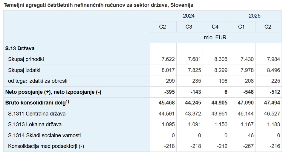 Dolg države se je v absolutnem znesku samo v letu dni povečal za 2 mrd EUR. (Vir: SURS)