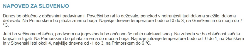 Včasih se mi zdi, da za to področje poizkušajo z napovedmi kopirati a.Korošce, vendar “pozabljajo”, da je vmes gorovje Karavank. Itd.