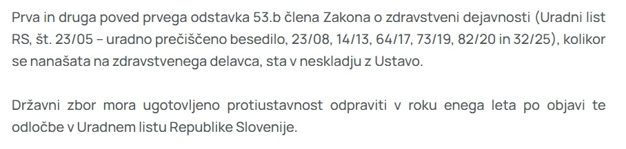 Bolj kot predbožična odločitev Ustavnega sodišča o neustavnosti zakona o zdravstveni dejavnosti v delu, ki je bil po vseh dosedanjih izjavah predsednika vlade Roberta Goloba ključen del t. i. zgodovinske zdravstvene reforme, je zanimiva in povedna orkestrirana relativizacija te odločitve, ki so jo vladni predstavniki ob podpori predsednice republike precej bizarno predstavljali skorajda kot podporo ustavnega sodišča vladnemu zakonu. Še iz nekaterih ločenih, sicer večinoma pritrdilnih mnenj posameznih ustavnih sodnikov je med vrsticami razbrati nekakšno “opravičevanje”, da so del zloglasnega 53.b člena razglasili za neustavnega. Zakon je pač tako slab in nesorazmeren pri ukrepih, da tudi kljub očitni ideološki servilnosti niso mogli pogledati stran.