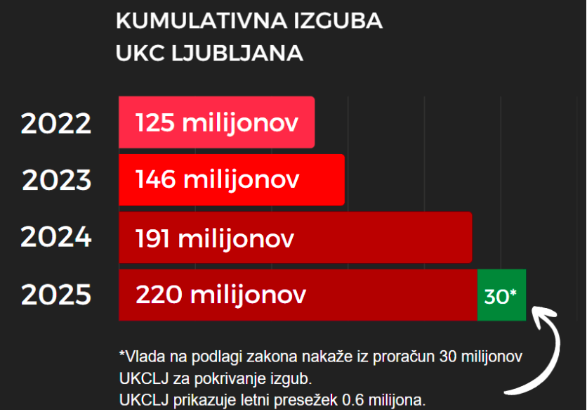 UKC Ljubljana tone v izgubah že vrsto let. Za leto 2025 jim je izgubo krila vlada (Svoboda, Levica, SD).
