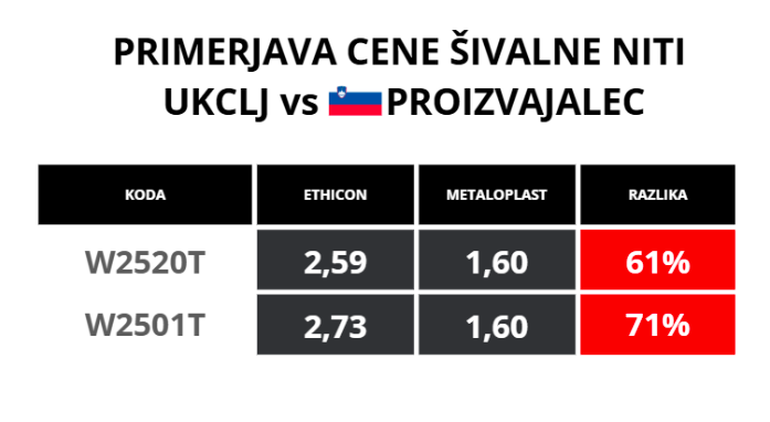 Družinsko podjetje Metaloplast s kakovostnimi izdelki do naročil v državnih bolnišnicah pride le stežka. Leta 2018 je bilo na primeru šivalnih niti izpostavljeno, koliko javnega denarja se izgublja pri takšnih naročilih (vir). Namesto da bi Klinični center kot skrbni gospodar sproti preverjal cene pripomočkov, vodstvo podpisuje anekse k javnemu naročilu iz 2021 in ohranja izbrane dobavitelja. V letih 2023–2025 so aneksi vredni več sto tisoč evrov! (vir)
