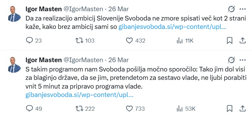 Ekonomist Igor Masten meni, da je Golobovo sestavljanje vlade popoln blef s ciljem ohranitve oblasti. (Vir: X Igor Masten)