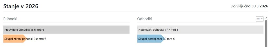 Tekoči primanjkljaj proračuna že po slabih treh mesecih znaša skoraj milijardo evrov. (Vir: MF)